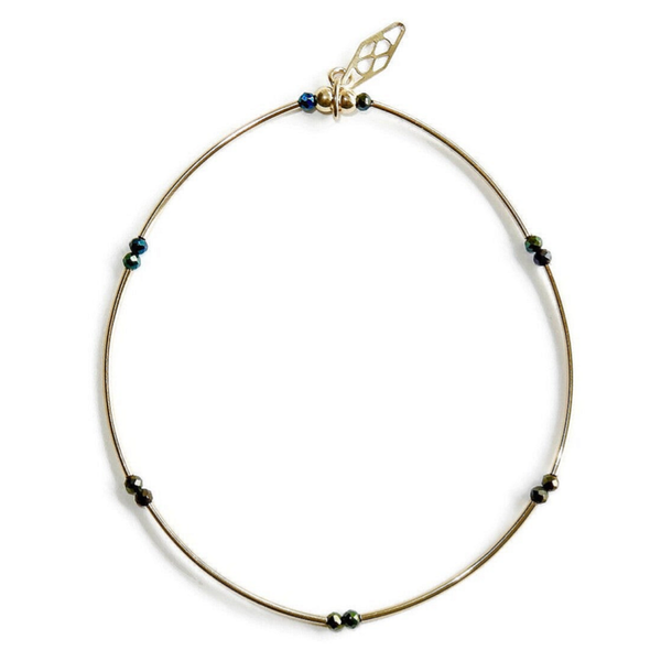 flexbracelet with tiny 2 mm faceted green Spinel gemstones & goldfilled tiny tubes