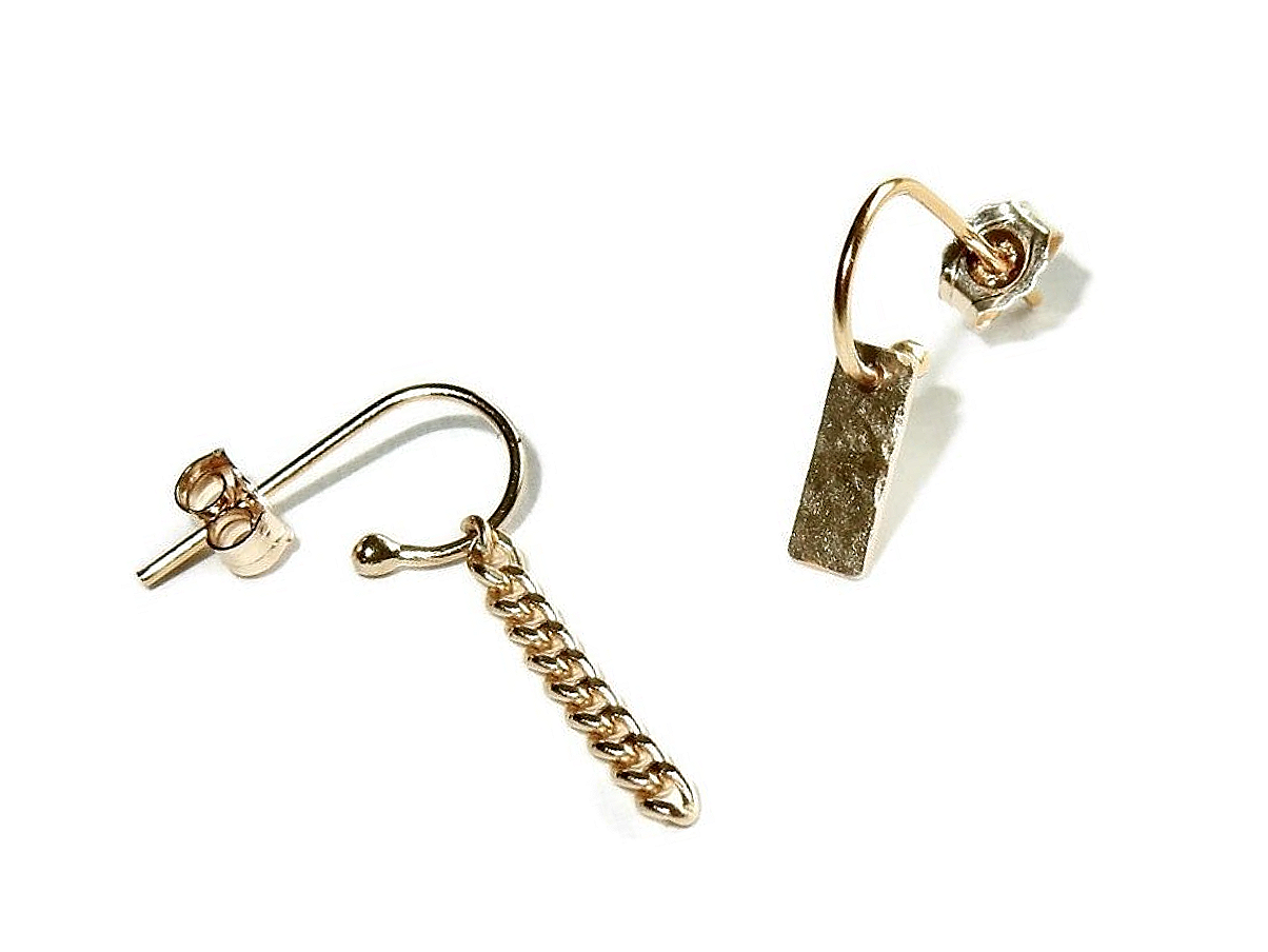 tiny open hoops, one with 1,5 cm chain, the other with a handhammered disc.