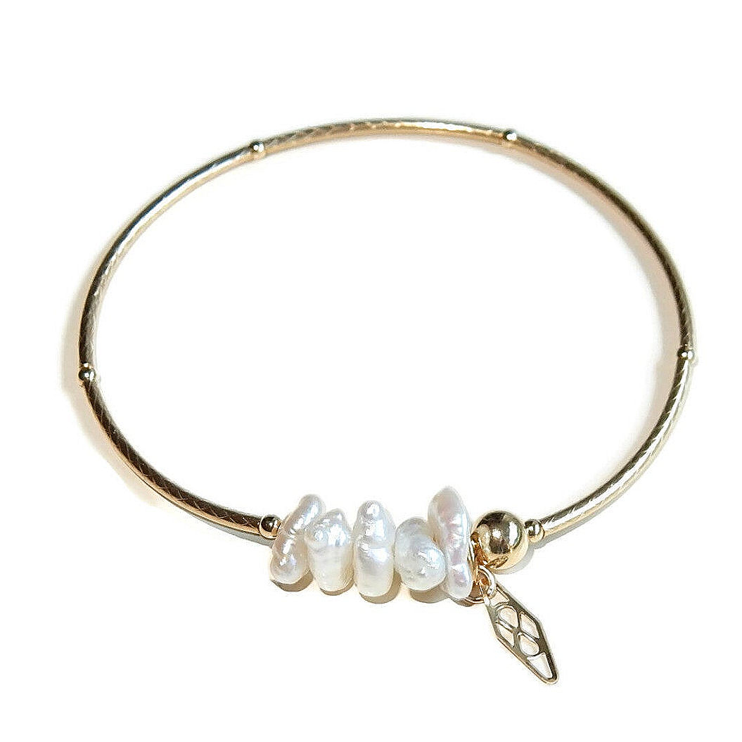 flexbracelet white irregularshaped baroquepearls & patterned tubes BFP2716