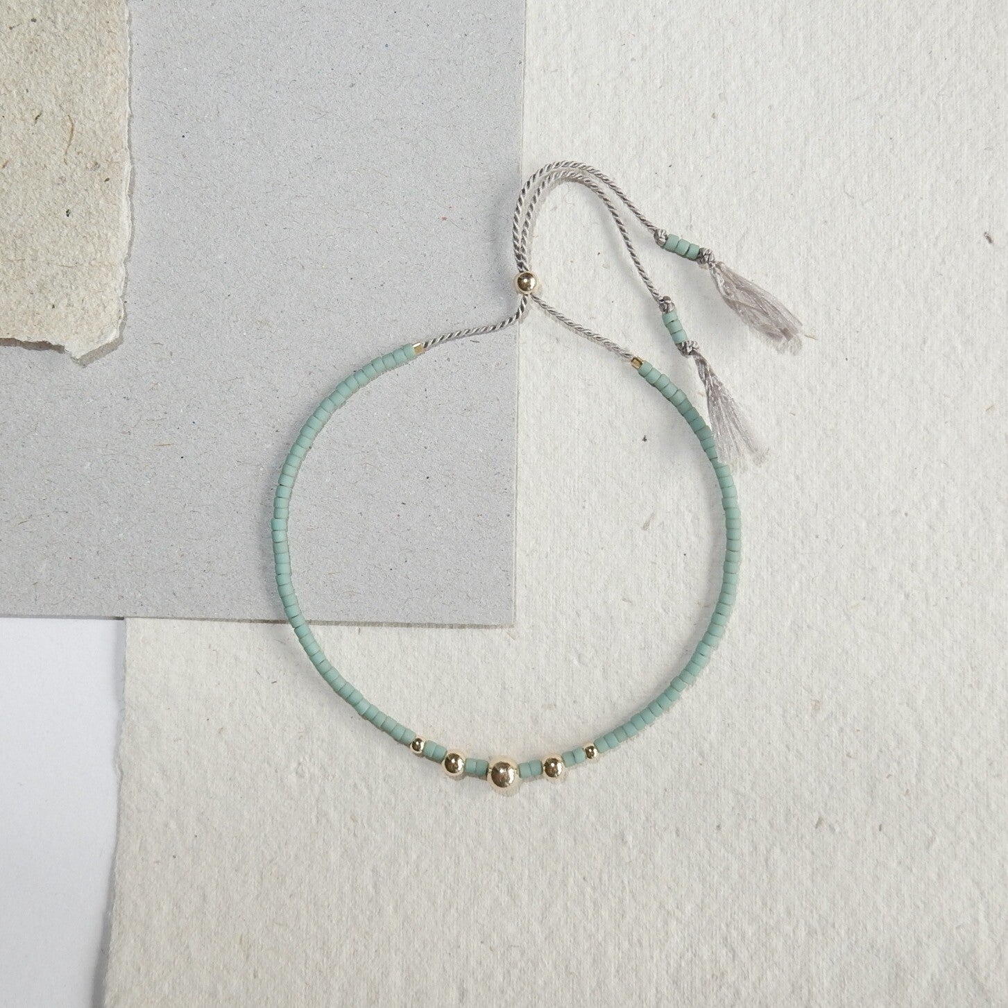 adjustable silk bracelet Lafauve Seafoam and goldfilled beads BLS3000