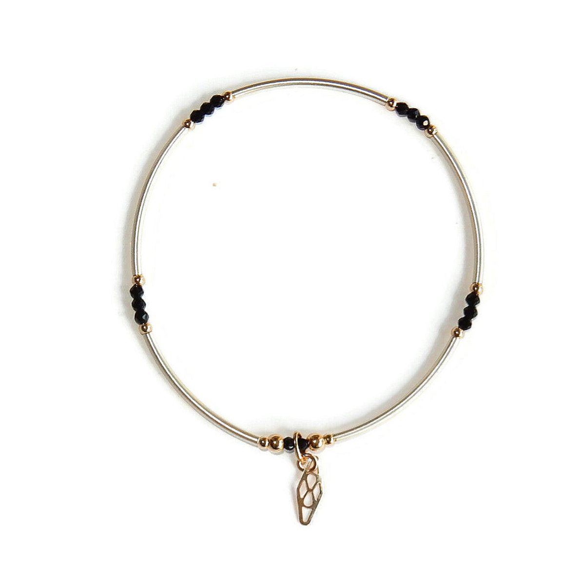 flexbracelet 2 mm silver & gold and black Spinel F3144