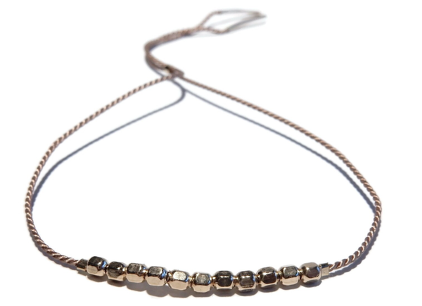 square 14K/20 goldbeads on a strong silknylon cord.
