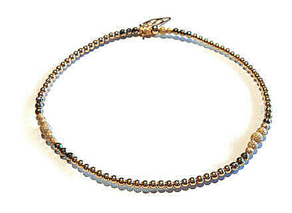 2 mm flexbracelet with accents of mat stardust 14K/20 gold beads and golden hematite.