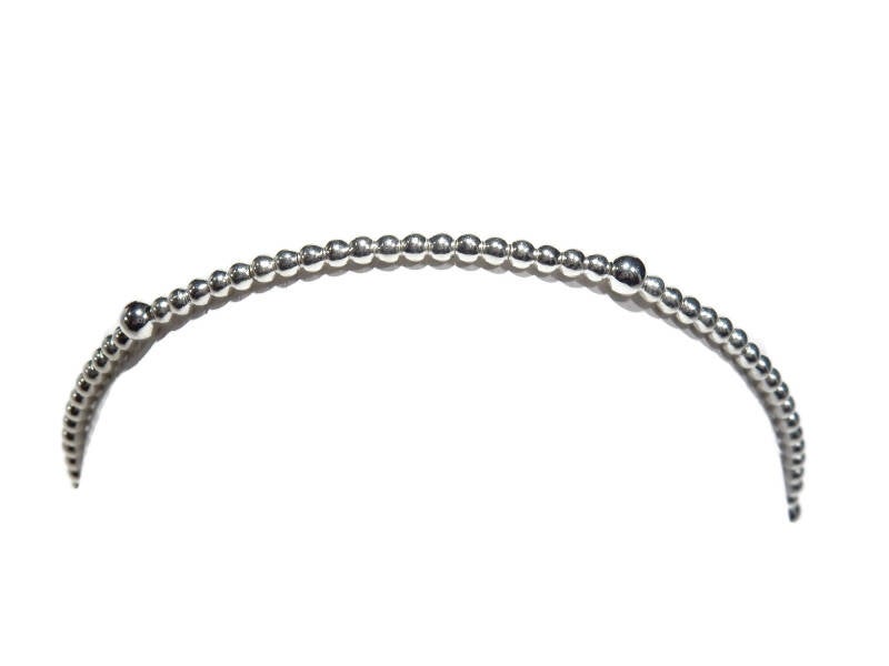 2 mm silver flexbracelets with 2 mm shiny beads and accents in 3 mm silver.