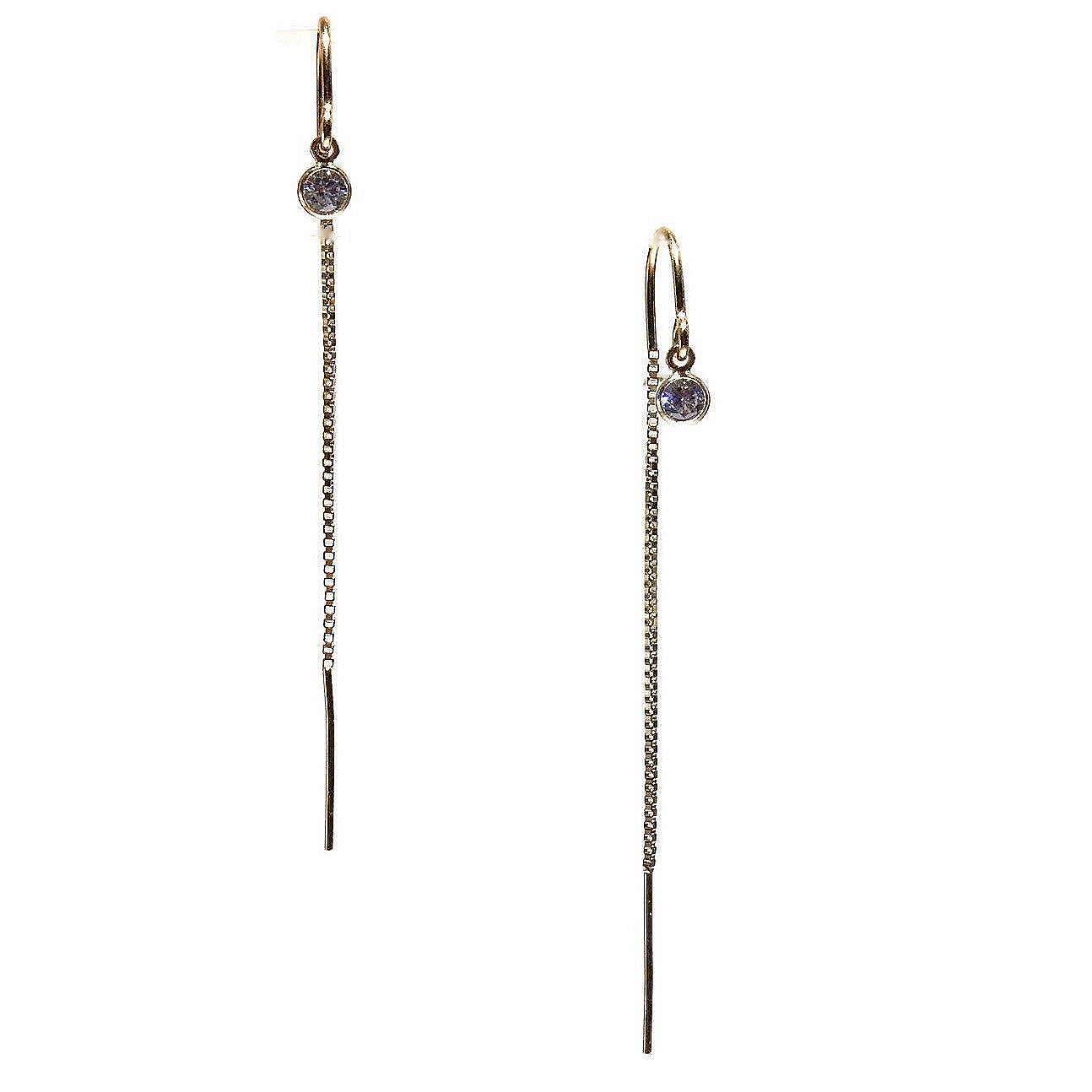 boxchain earrings with a shiny faceted 3 mm white cz in gold setting