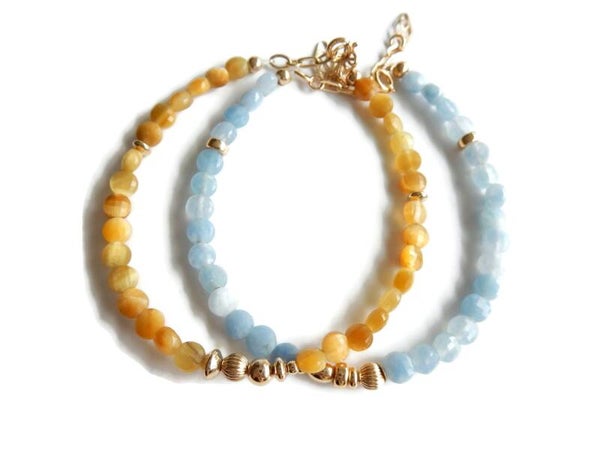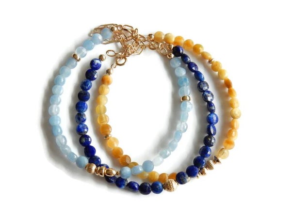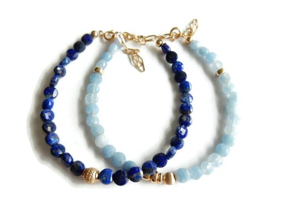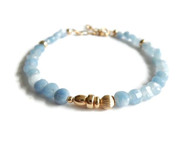 4 mm faceted flat Aquamarine coins and 14K/20 golden accents.