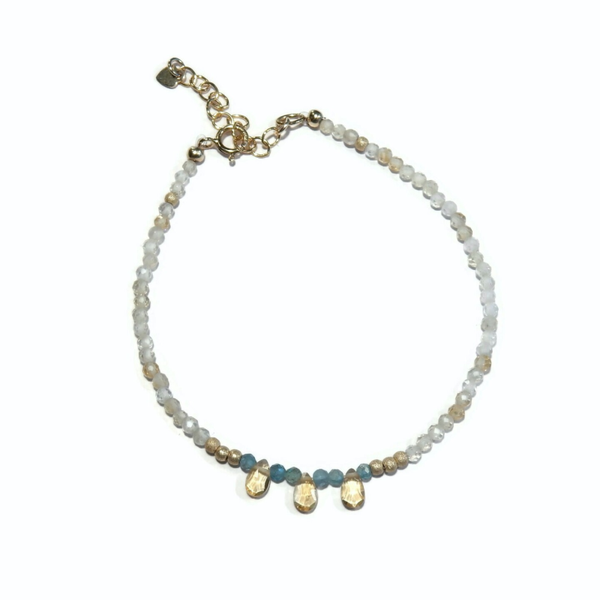 2 mm faceted Citrine and Apatite beads with tiny (approx 3x5 mm) aquamarine briolettes.
