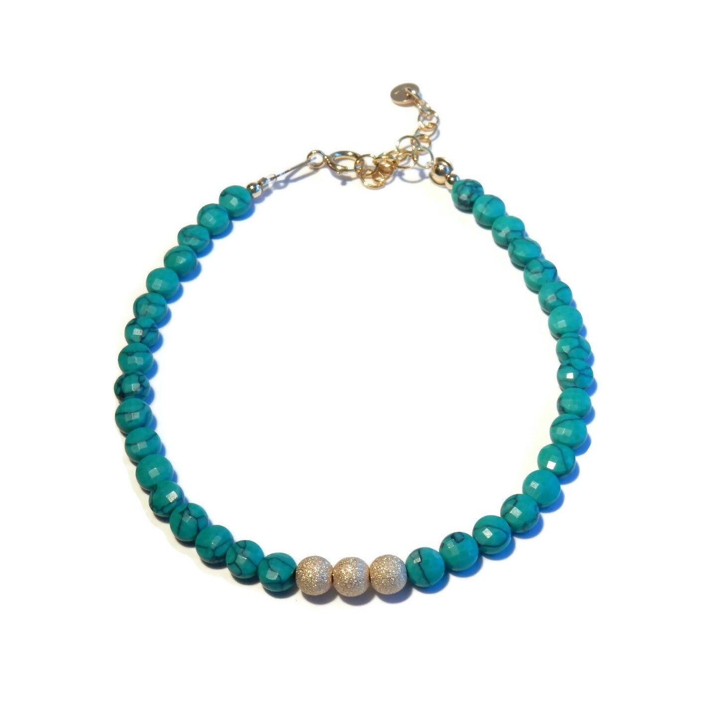 4 mm flat faceted deepgreen Turquoise and 14K/20 gold