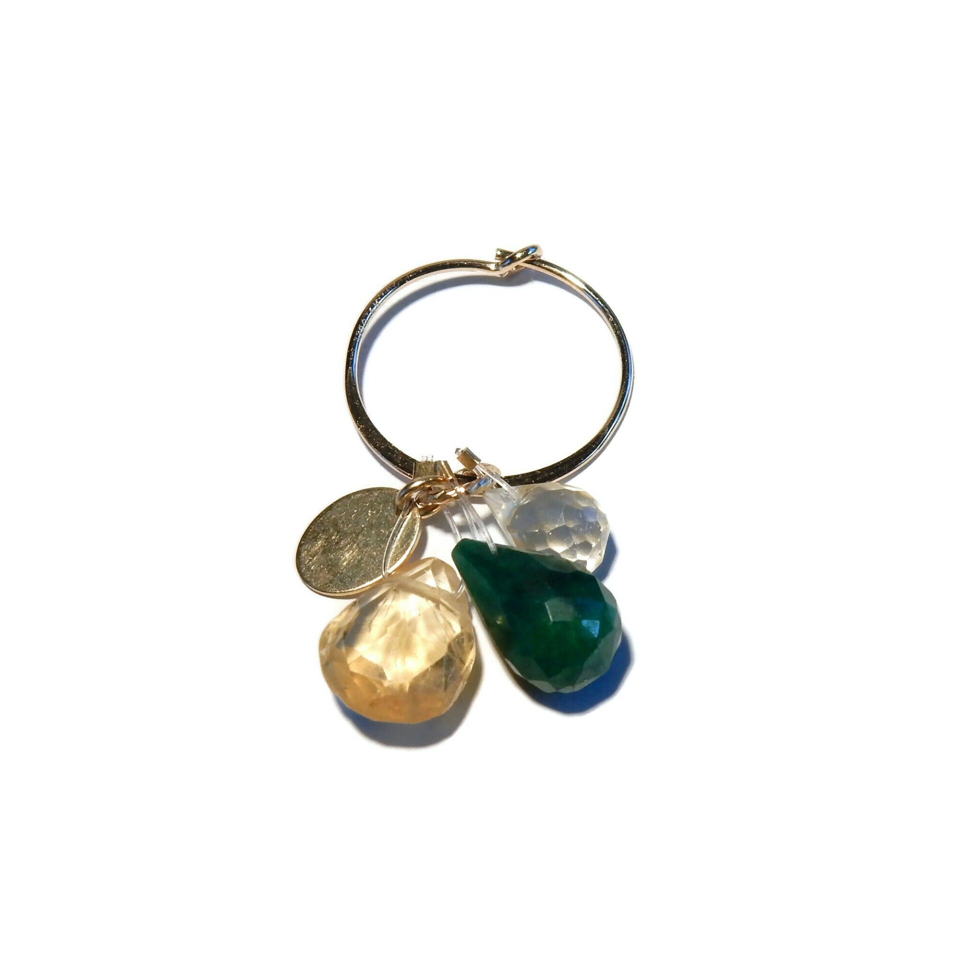 Emerald, Citrine and a 14K/20 gold qualitylabel on a flattened hoop