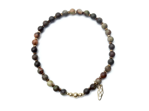 4 mm mat Floweragate stones and accents in Hematite & 14K/20 gold