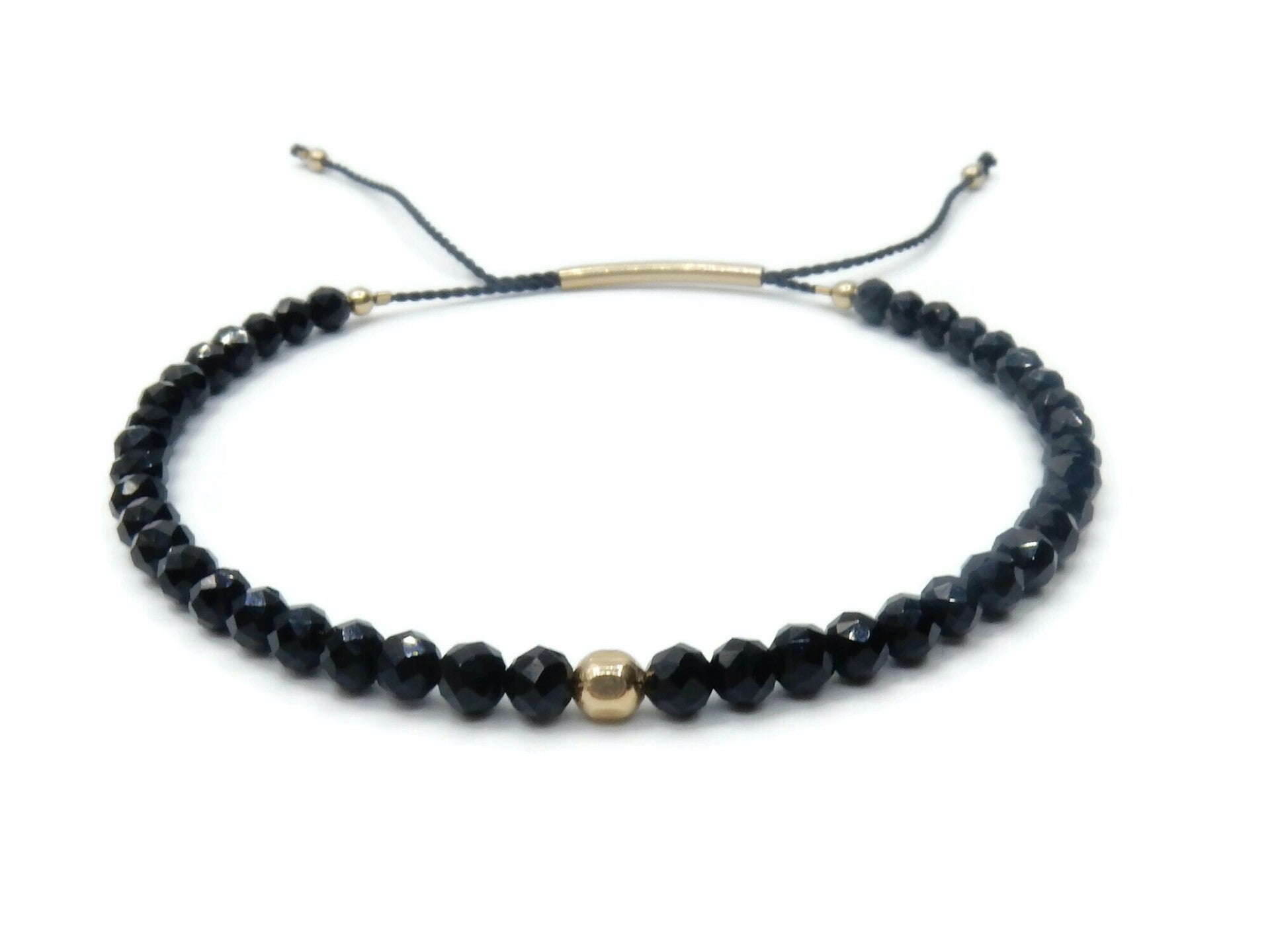 open flattened hoops, diam 26 mm, with 3 mm faceted black Spinel gemstones and a 14K/20 gold charm