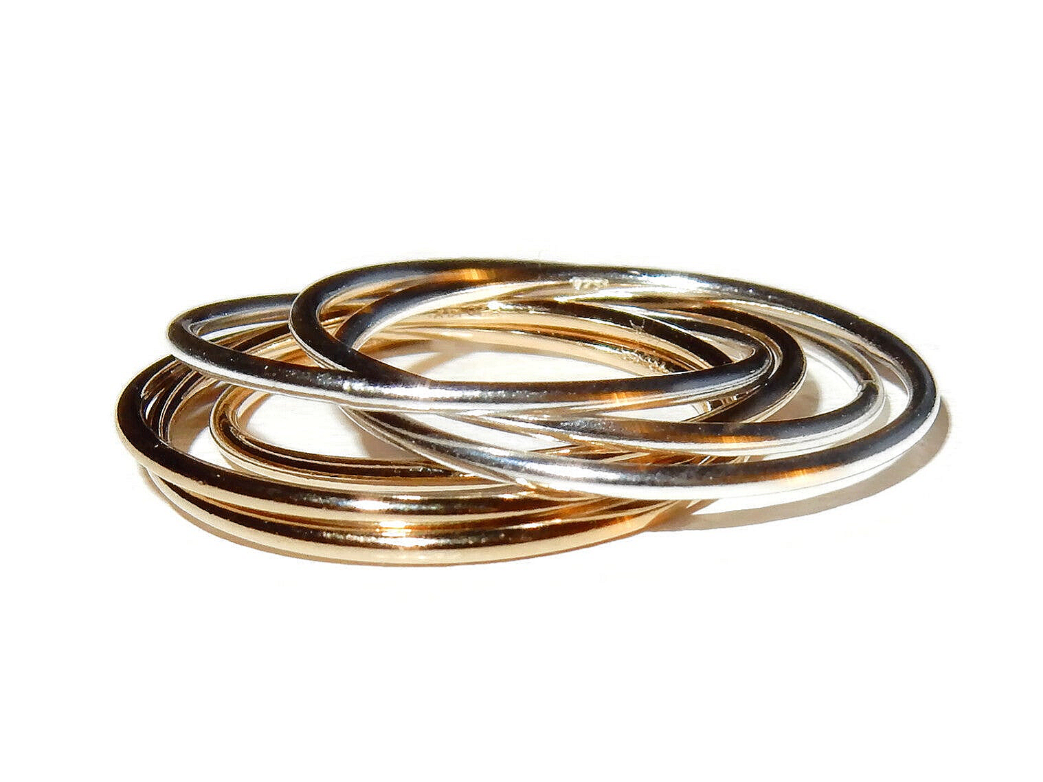 two 3 in 1 connected rings in 14K/20 gold and sterling silver