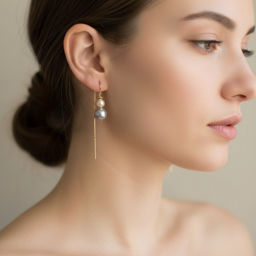 earrings Pearls pull through white & grey round freshwaterpearls AAAQ EP3213